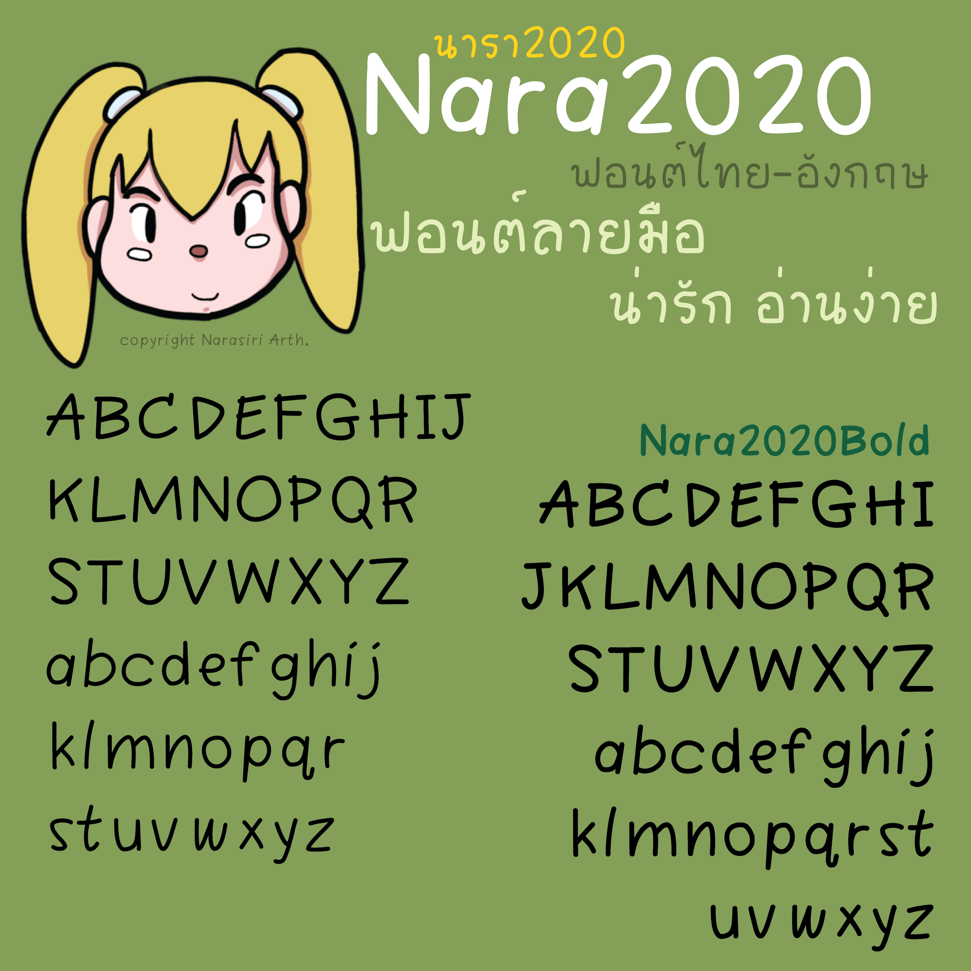 Nara2020 ฟอนต์ลายมือ ภาษาไทย-อังกฤษ ลายมือเขียนแบบไม่เป็นทางการ ตัวเนี้ยบ เรียบร้อย อ่านง่าย สบายตา